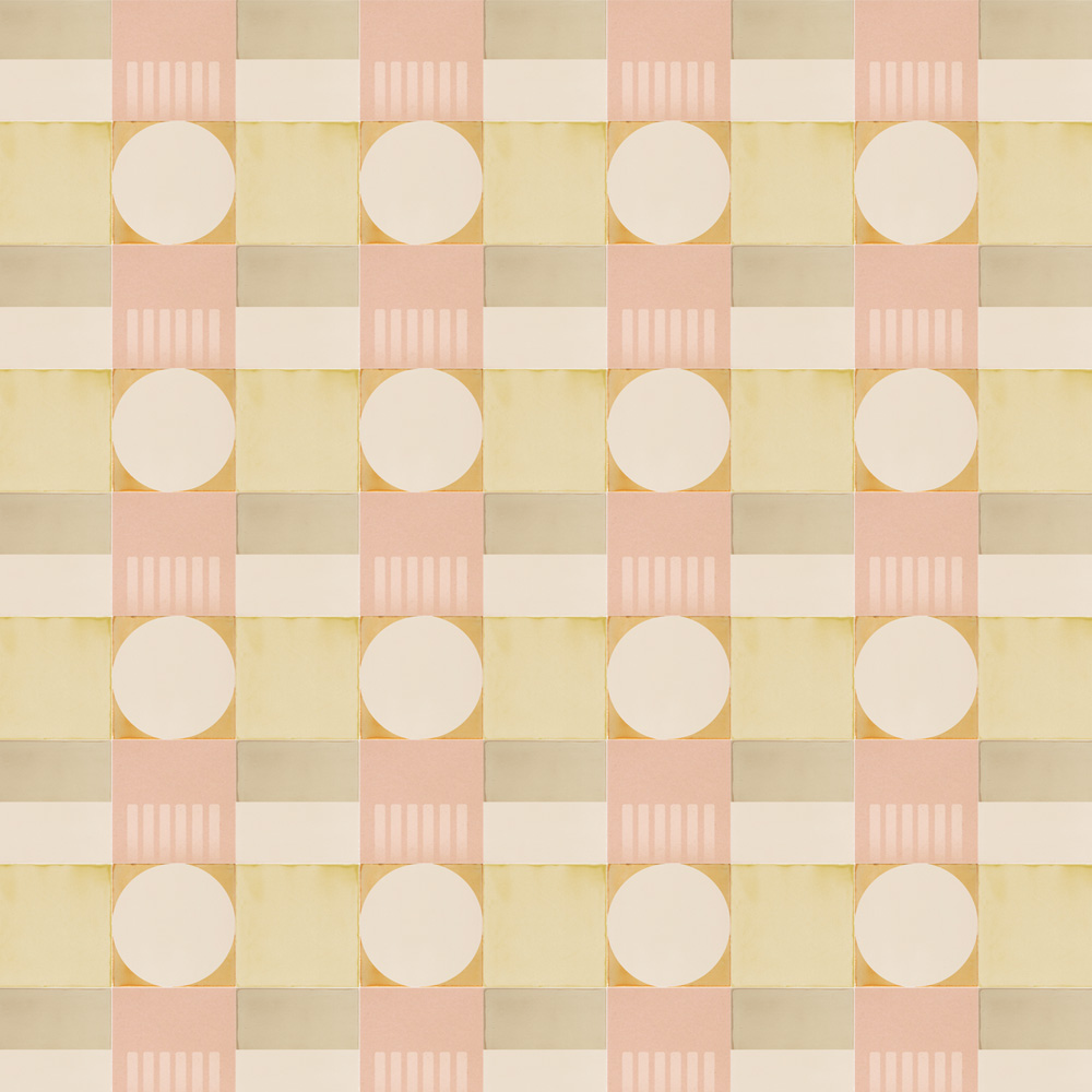 This third design in our series inspired by all things mid-century modern is again a playful take on the clean, modular geometry of its source material. If you are intrigued, take a look at the other designs in the series. The mix of 3D Relief shapes and screen-printed shapes is a thread that further ties these designs together. This particular iteration evokes a chequered tartan pattern but with circles woven in rather than squares. As always, you choose your own colour combination.